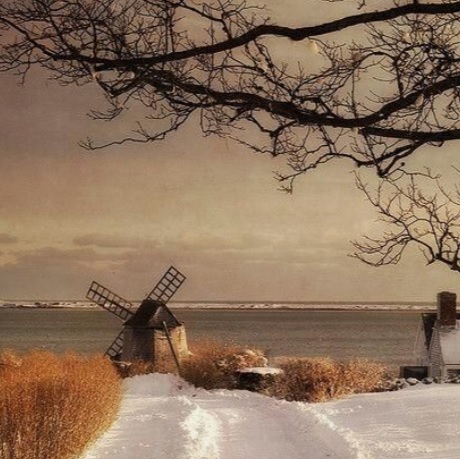 la nieve sobre las aspas de aquel viejo molino de viento forrando